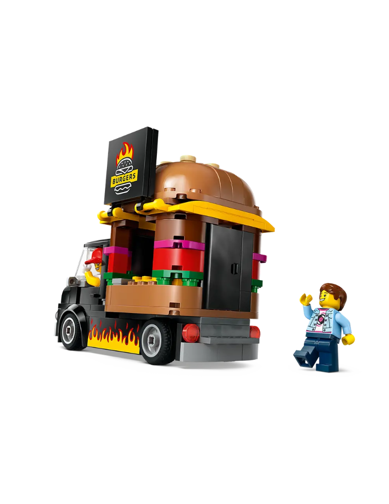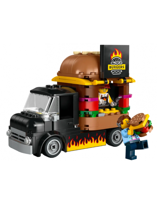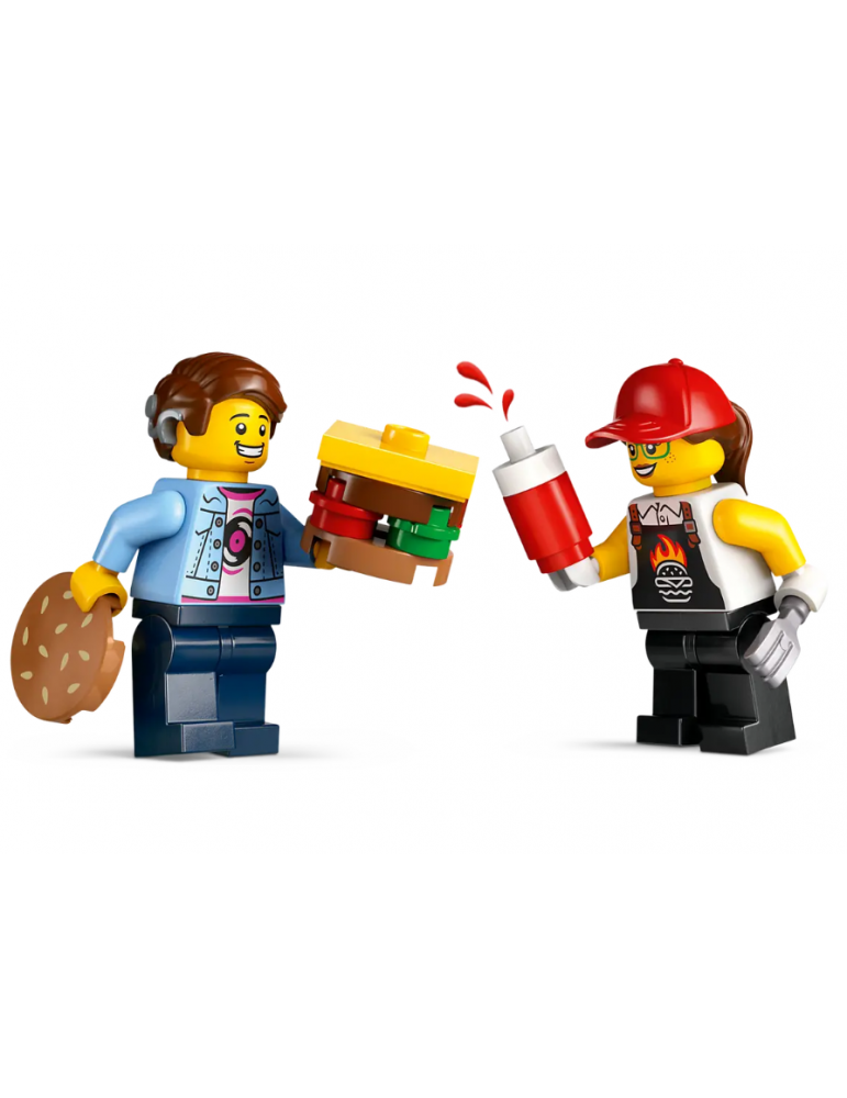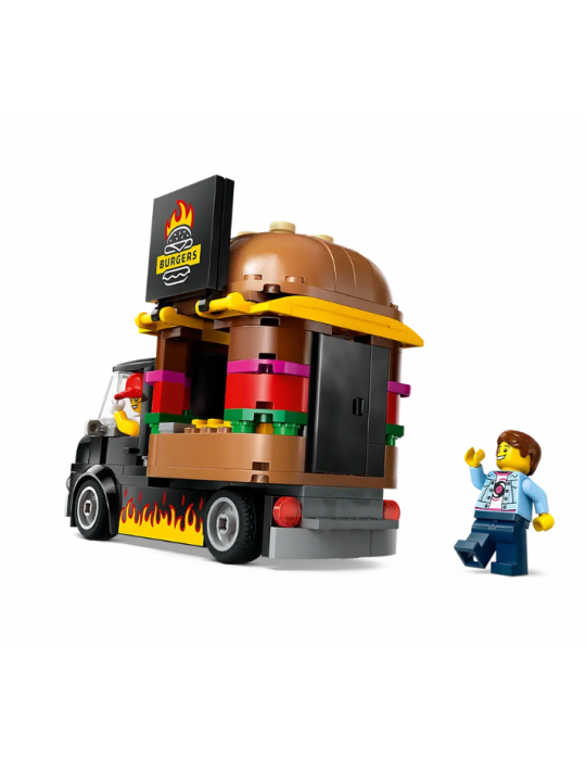 Il playset Furgone degli hamburger LEGO® City per i bambini dai 5 anni in su è un fantastico regalino per le giovani immaginazioni. Sormontato da un hamburger gigante, il furgone di fast food ha un bancone mobile che può essere staccato dal camioncino ed è dotato di un’area dettagliata per la preparazione del cibo, condimenti e uno sportello di servizio che si apre per esporre un cartello con un hamburger grigliato. Il set include anche una minifigure del venditore e una minifigure del cliente con un impianto cocleare.
