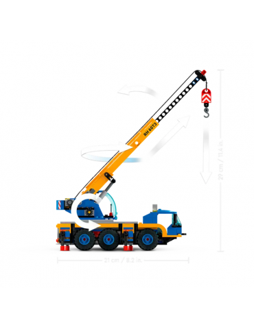 Ecco un magnifico set per i piccoli appassionati di veicoli da cantiere. La Gru mobile LEGO® City è ricca di caratteristiche e funzioni autentiche, come gli stabilizzatori che si abbassano, il braccio mobile che ruota, si estende e alza e abbassa il verricello. Basta aggiungere le minifigure dell'operatore e del conducente per trascorrere ore di gioco di ruolo realistico. Nel set è inclusa una piattaforma stradale LEGO City.