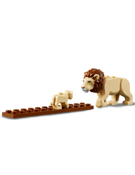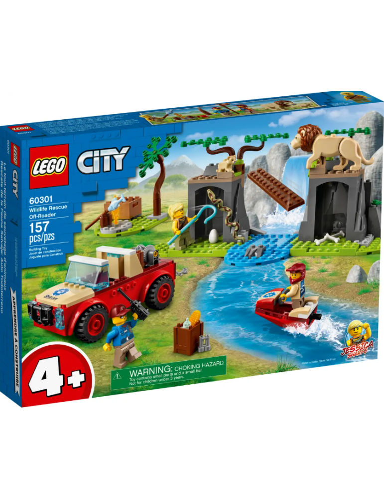 Cosa c’è nella scatola? Questo playset contiene tutto il necessario per costruire un 4x4 giocattolo, una moto d’acqua e una savana, le minifigure di Jessica Sharpe, un ranger e un esploratore, oltre a un leone, un cucciolo di leone e un serpente.