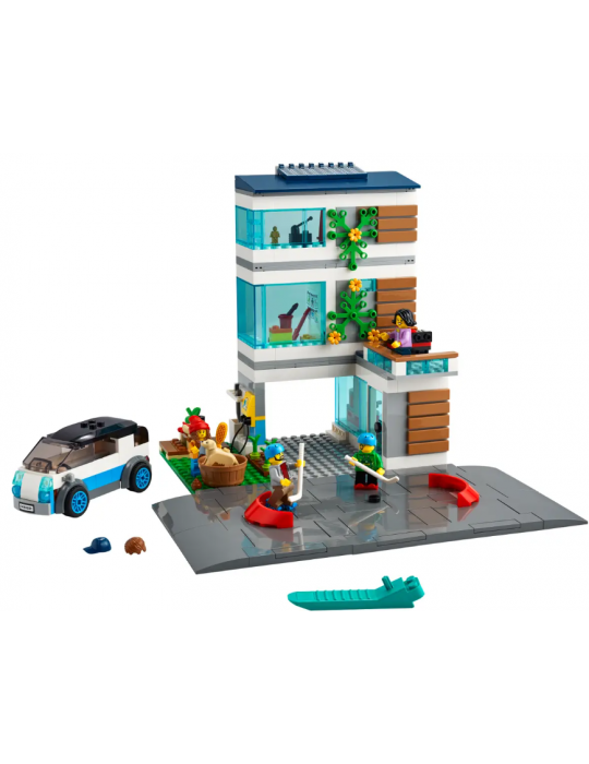 La Villetta familiare LEGO® City è dotata di salotto, cucina, sala hobby, camera da letto, bagno e tante funzioni ecologiche, tra cui pannelli solari, stazione di ricarica e un fantastico veicolo elettrico. I bambini possono espandere questo set utilizzando le piattaforme stradali incluse per creare la propria città. E con una famiglia di minifigure, più il Labrador Retriever, c’è tutto ciò di cui hanno bisogno per ore di gioco di ruolo.Esperienza di costruzione e gioco per i bambini di5+ anniQuesto set include una guida alla costruzione e le Instructions PLUS, parte dell’app gratuita LEGO Building Instructions per smartphone e tablet. Questa guida alla costruzione interattiva con strumenti di visualizzazione come zoom e rotazione aiuta i giovani fan LEGO a diventare maestri costruttori.Fantastici giocattoliI set LEGO City stimolano il gioco di ruolo basato su eventi della vita reale, con edifici ricchi di funzionalità, veicoli e personaggi realistici.