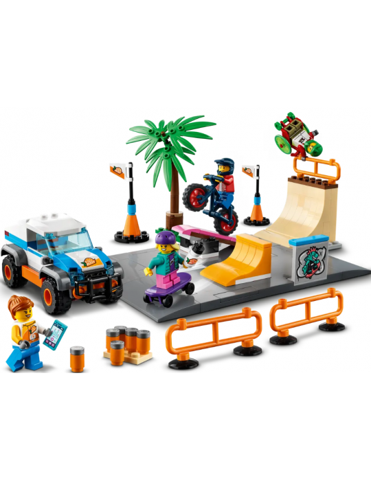 Il giocattolo dello Skate Park LEGO® City ha tutto ciò di cui i bambini hanno bisogno per organizzare emozionanti eventi di pattinaggio, tra cui una quarter pipe, una rampa, un’altalena e una grind rail. I bambini possono anche espandere questo set per creare la propria città con la piattaforma stradale inclusa. E con le minifigure di ciclista BMX, atleta su sedia a rotelle e skateboarder nel mix, sono garantite infinite ore di divertimento da brivido!Per i bambini di 5+ anniQuesto set include una guida alla costruzione e le Instructions PLUS, parte dell’app gratuita LEGO Building Instructions per smartphone e tablet. Questa guida interattiva con strumenti di visualizzazione come zoom e rotazione aiuta i fan LEGO a diventare maestri costruttori.Il mondo creativo di LEGO CityI set LEGO City offrono una grande esperienza di costruzione. I bambini raccontano storie che descrivono la vita in modo divertente con edifici ricchi di funzionalità, veicoli e personaggi realistici.