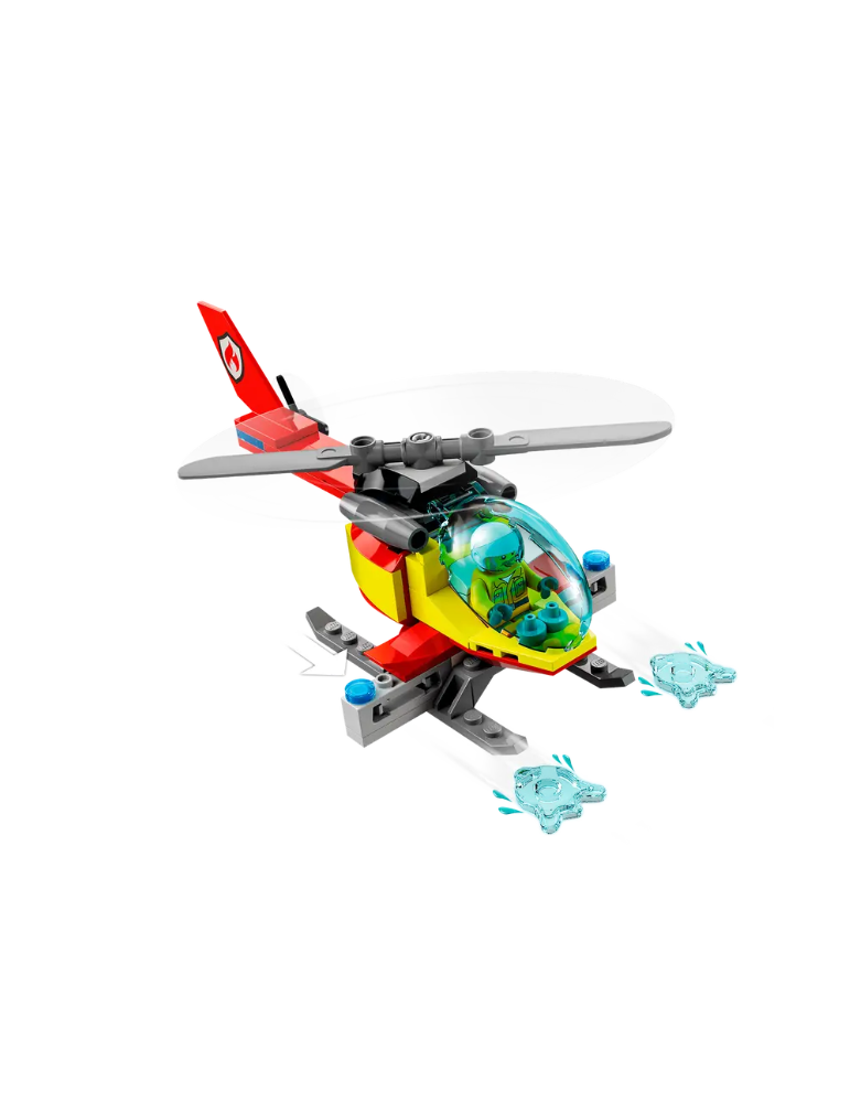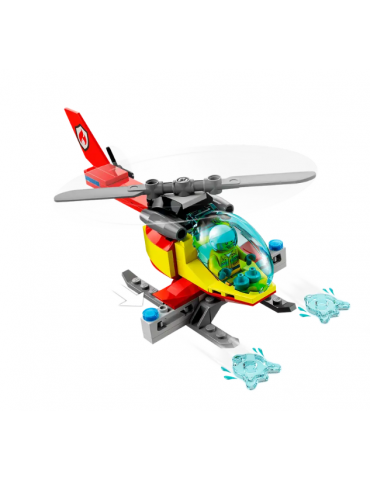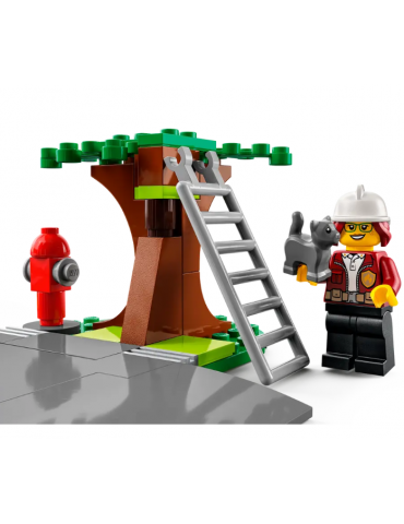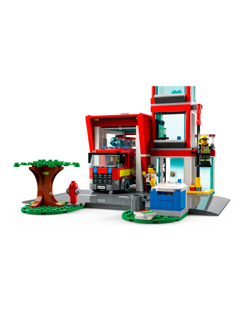 Cosa c'è nella scatola? Tutto il necessario per costruire una caserma dei pompieri a 3 piani, un camion, un elicottero, 5 minifigure, un cane, un gatto e una piattaforma stradale LEGO® da collegare ad altri playset LEGO City