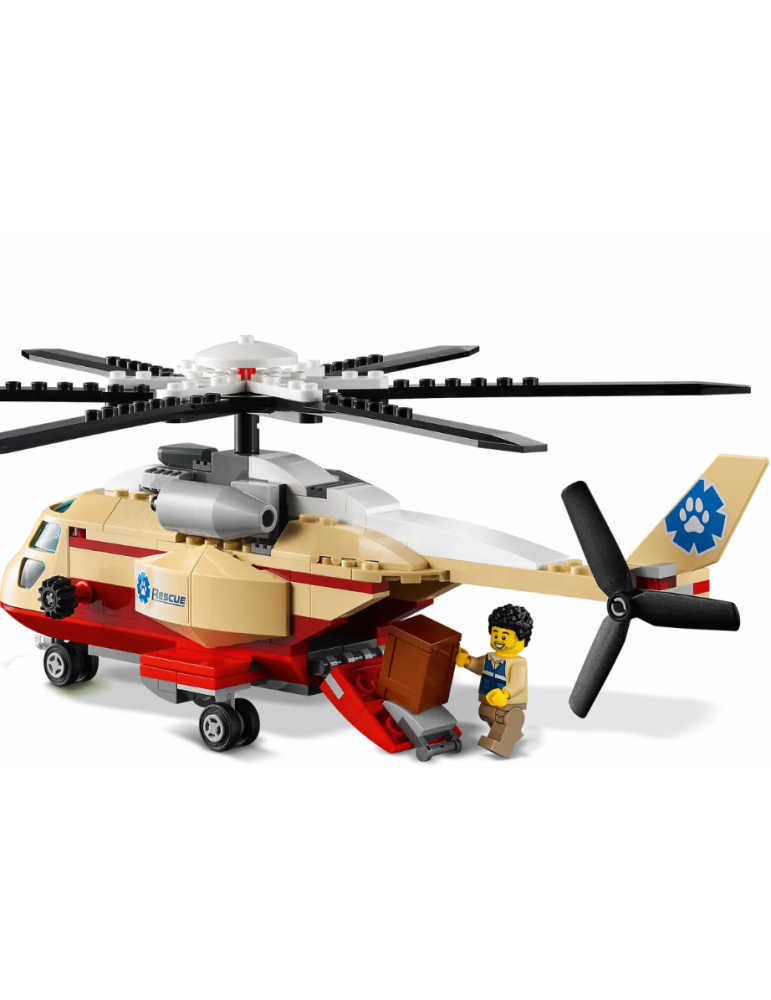 L’elicottero di soccorso di questo playset Operazione di soccorso animale LEGO® Citymisura 12 cm di altezza, 35 cm di lunghezza e 31 cm di larghezza.
