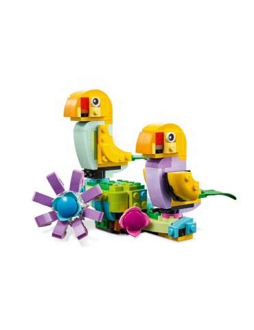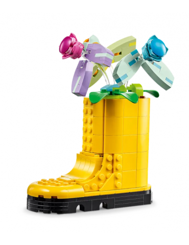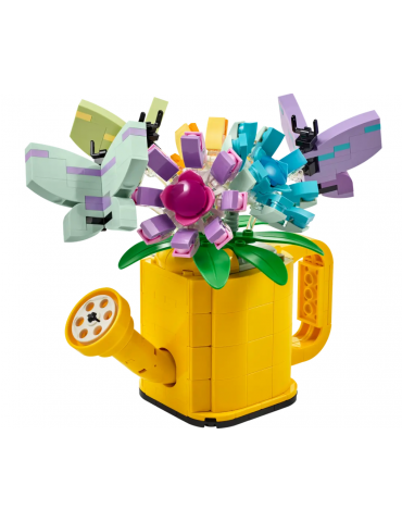 Costruisci, ricostruisci, gioca ed esponi 3 modelli colorati ispirati alla natura con il set 3 in 1 Innaffiatoio con fiori LEGO® Creator (31149). Il set contiene un innaffiatoio giallo in mattoncini con manico e rosetta, 3 fiori giocattolo con petali mobili e 3 farfalle giocattolo su bastoncini trasparenti che danno l’impressione che stiano volando.