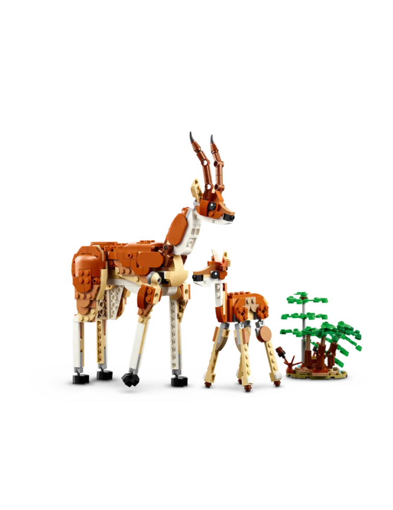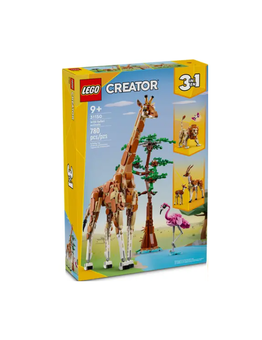 I bambini e le bambine dai 9 anni in su possono partecipare a un fantastico safari con questo set giocattolo costruibile Animali del safari LEGO® Creator!
