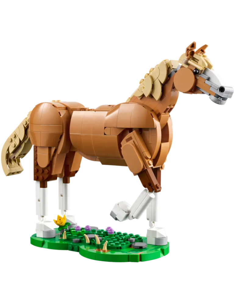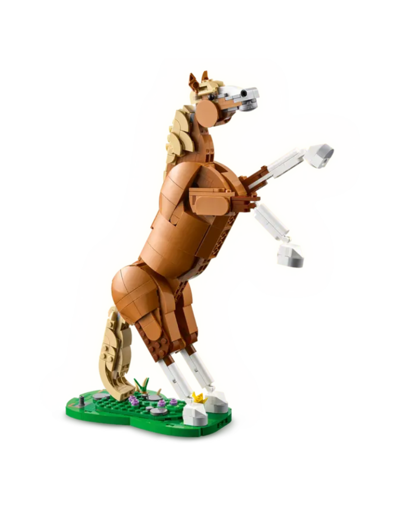 Le bambine e i bambini amanti degli animali, dai 9 anni in su, possono divertirsi con questo set da costruzione Cavallo meraviglioso (31166). Il cavallo giocattolo è altamente snodabile e può muovere la testa, il collo, i fianchi, le caviglie, la coda e uno dei ginocchi. Il set contiene inoltre una base a effetto erba, dove i bambini possono esporre il cavallo in 3 diverse pose: in piedi su 3 o 4 zampe, oppure impennato sulle zampe posteriori.