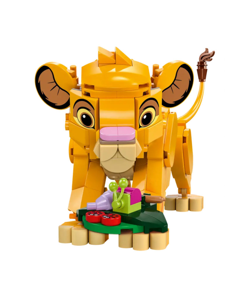 Il precoce cucciolo Simba LEGO ǀ Disney del film di successo è dotato di testa girevole, gambe e coda mobili e il set contiene anche una foglia e 4 “insetti” come “cibo”.