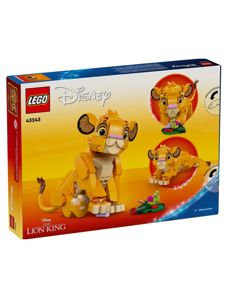 Incanta i bambini e i fan de Il Re Leone dai 6 anni in su con questo divertente giocattolo costruibile play-and-display di Simba, il Cucciolo del Re Leone LEGO® ǀ Disney, contenente un personaggio costruibile che celebra il trentesimo anniversario de Il Re Leone!