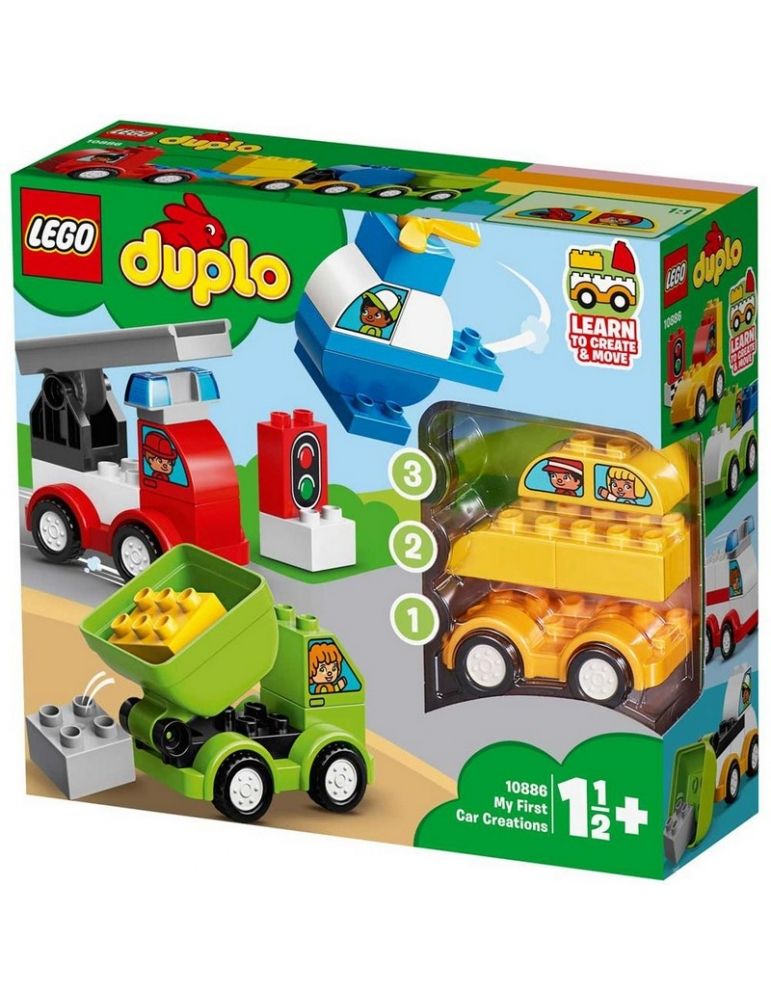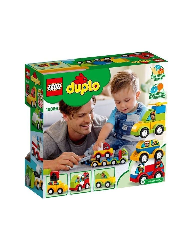 I bambini in età prescolare adoreranno costruire e ricostruire i coloratissimi veicoli di LEGO® DUPLO® I miei primi veicoli 10886. Aiuta il tuo bambino a smistare i colori per costruire un elicottero giocattolo, un taxi, un camion della spazzatura e un camion dei pompieri, oppure mischia tutti i mattoncini e crea infiniti modellini con pochi elementi DUPLO, sviluppando le sue capacità motorie complesse. Questo set di veicoli per bambini è ideale per sviluppare l'immaginazione mentre il tuo piccolo impara a creare e a muoversi con il classico gioco delle macchinine. I mattoncini DUPLO sono divertenti, sicuri e idonei per le manine dei più piccoli.