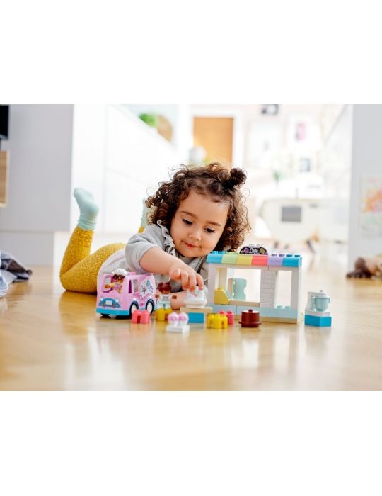 - I bambini e le bambine adoreranno interpretare storie fantasiose con la Pasticceria LEGO® DUPLO® dotata di caffetteria e furgone per le consegne. Con questo fantastico regalo per i bambini dai2 anni in sui, il gioco di finzione è servito tutto il giorno!