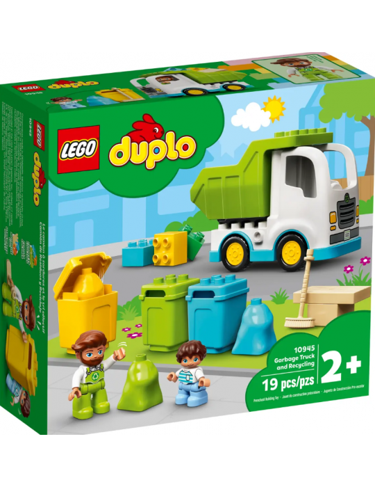 C’è così tanto da fare e imparare per i piccoli mentre aiutano 2 personaggi DUPLO in una serie di attività di riciclaggio. I bambini possono esercitarsi a ordinare i colori mettendo i sacchi colorati nei bidoni corrispondenti; sviluppare capacità motorie complesse con i coperchi dei bidoni apri-e-chiudi e alla guida dell’autoribaltabile; liberare l’immaginazione con giochi di ruolo dalle storie infinite; spazzare via i rifiuti rovesciati con la scopa grande e sviluppare abitudini ecologiche utili per tutta la vita.