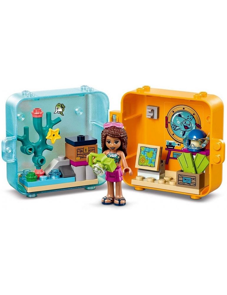 I cubi delle vacanze contengono un grande divertimento in un piccolo spazio. Questo cubo contiene la mini-doll di Andrea LEGO Friends e un misterioso animale marino giocattolo. Troverai anche tanti elementi creativi e un foglio di adesivi con cui le bambine possono personalizzare il cubo.