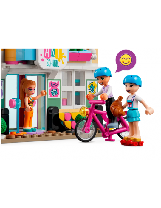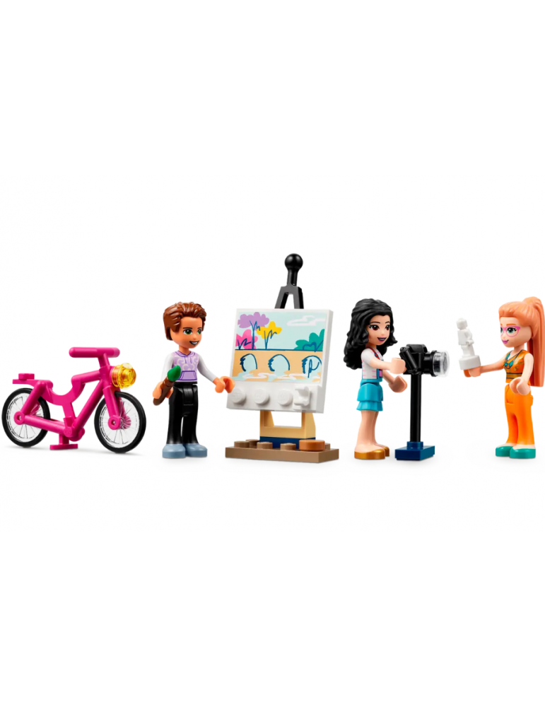 All’interno del magnifico edificio a 3 piani ci sono tanti giocattoli artistici, dove bambini e bambine giocano con Emma di LEGO® Friends mentre impara l’arte della ceramica, la moda e la stampa in 3D.