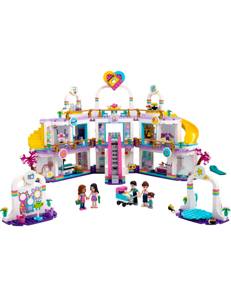 Il centro commerciale di Heartlake City conquisterà i bambini che amano lo shopping. Fornito con 6 personaggi, tra cui una nuova micro-doll, permette ai piccoli di esplorare i negozi e i ristoranti con Emma e la sua famiglia.