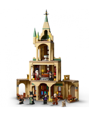 Questo playset multilivello è caratterizzato da diverse aree che ispirano il gioco di fantasia. Ognuna di esse è ricca di dettagli autentici tratti dalla famosa saga di film. Il set include 6 minifigure di Harry Potter, Hermione Granger™, Albus Silente™, Severus Piton™, Argus Gazza e Madama Pince. Non mancano oggetti familiari come il Mantello dell’invisibilità di Harry, il Pensatoio in cui sono custoditi i ricordi, la leggendaria Spada di Grifondoro, il celebre Cappello Parlante e la piccola Fanny che risorge dalle ceneri.