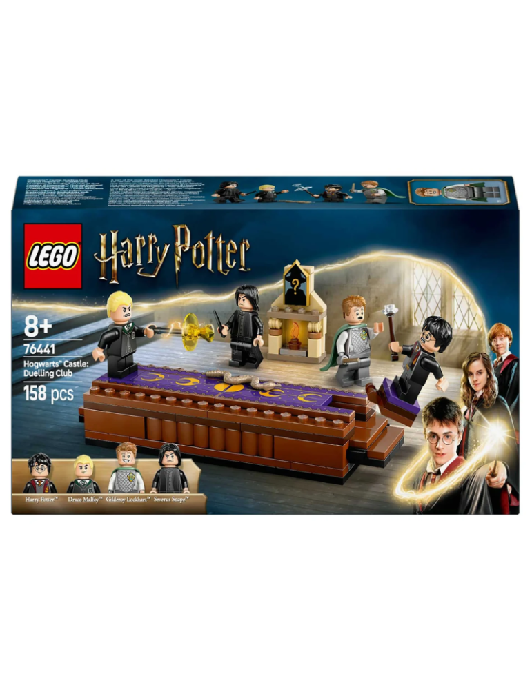 Ricrea un’incantevole scena del Club dei Duellanti di Harry Potter e la Camera dei Segreti con questo magico giocattolo Castello di Hogwarts™ LEGO® Harry Potter™: (76441) per bambini dagli 8 anni in su. Il set contiene una piattaforma di battagliacostruibile per 2 minifigure: spingi i gradini alle due estremità per far cadere la minifigure opposta, più 1 dei 14 ritratti di Hogwarts collezionabili da esporre sopra il caminetto costruibile. Il set include 4 personaggi famosi: le minifigure LEGO di Harry Potter e Draco Malfoy™, ciascuna con una bacchetta ed elementi di incantesimi magici, oltre alle minifigure di Gilderoy Lockhart e Severus Piton per giochi di ruolo creativi.