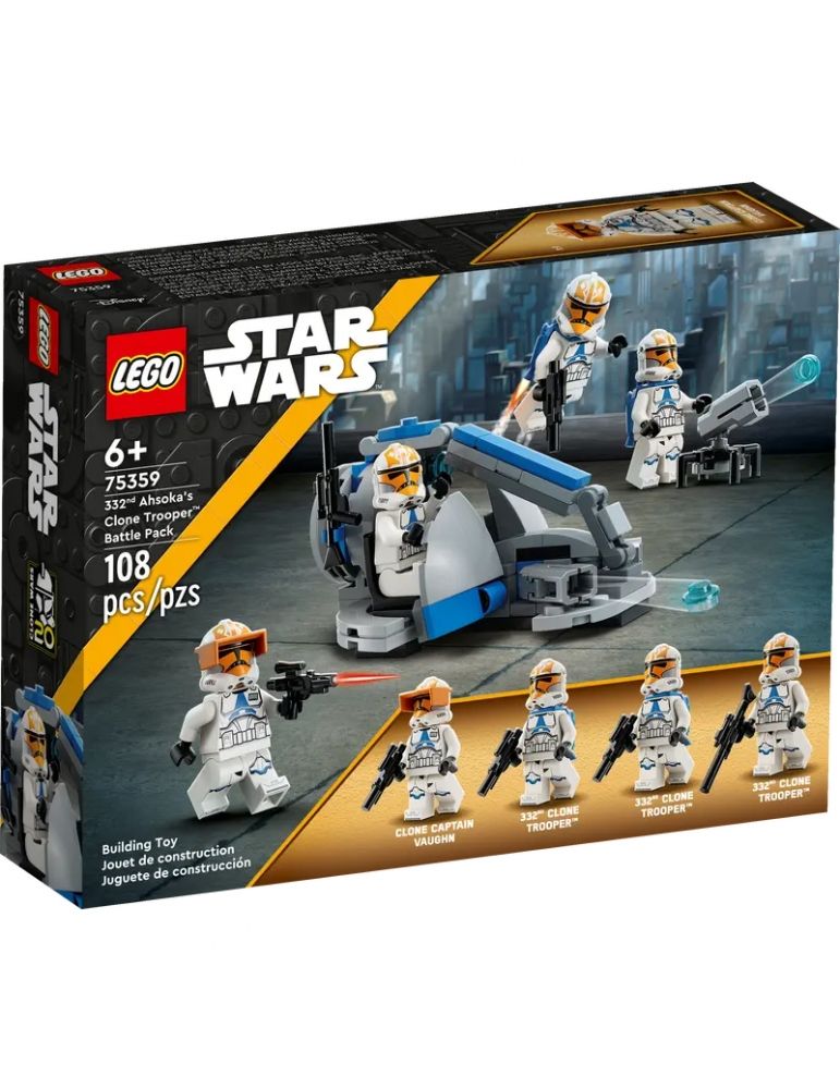 I bambini possono ricreare le scene di Star Wars: Le guerre dei cloni e portare a termine le loro emozionanti missioni con il Battle Pack Clone Trooper™ della 332a compagnia di Ahsoka (75359). Il set include 4 minifigure LEGO® Star Wars™: una minifigure LEGO del Capitano clone Vaughn, novità di agosto 2023, con un casco speciale e un Clone Trooper della 332° compagnia, più un fucile blaster, 3 blaster e 2 accessori jetpack per ispirare il gioco di fantasia. Una fantastica idea regalo per i fan di Star Wars: Le guerre dei cloni dai 6 anni in su, questo giocattolo costruibile contiene anche uno Speeder di supporto della fanteria clone con 2 shooter e sedili per 2 minifigure LEGO, più un cannone laser spara-bottoncini.