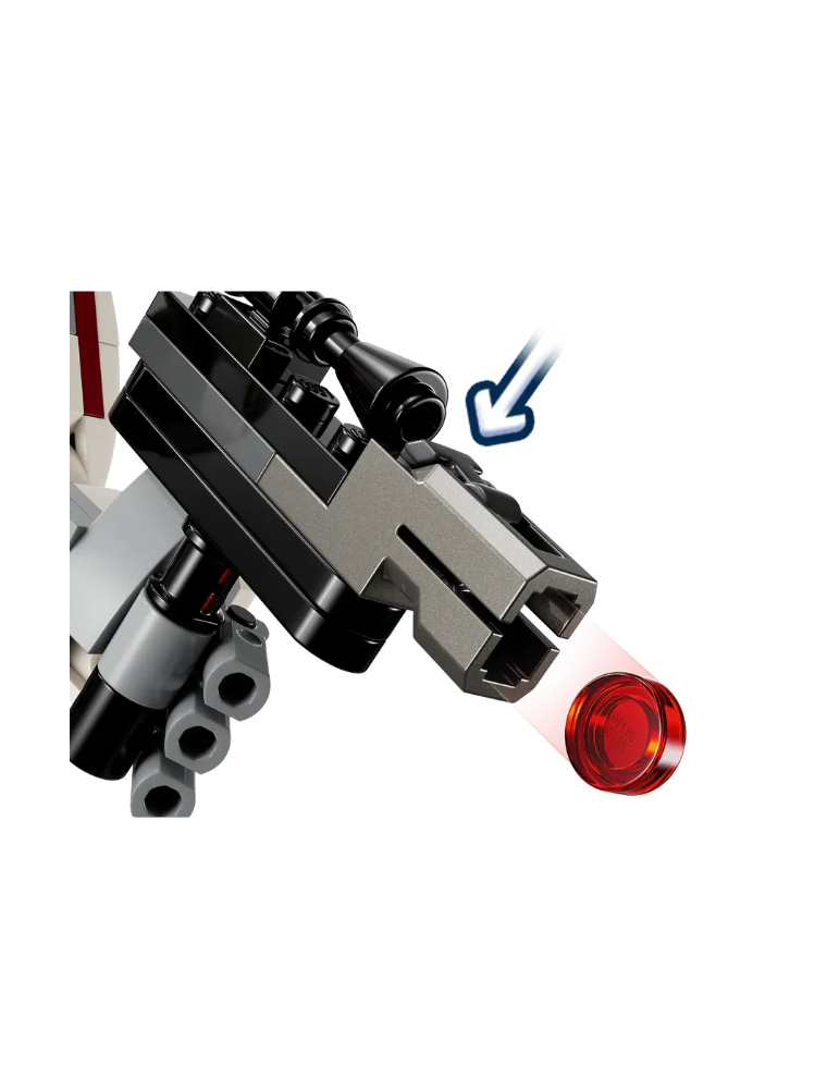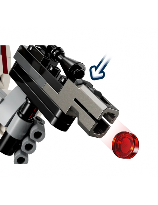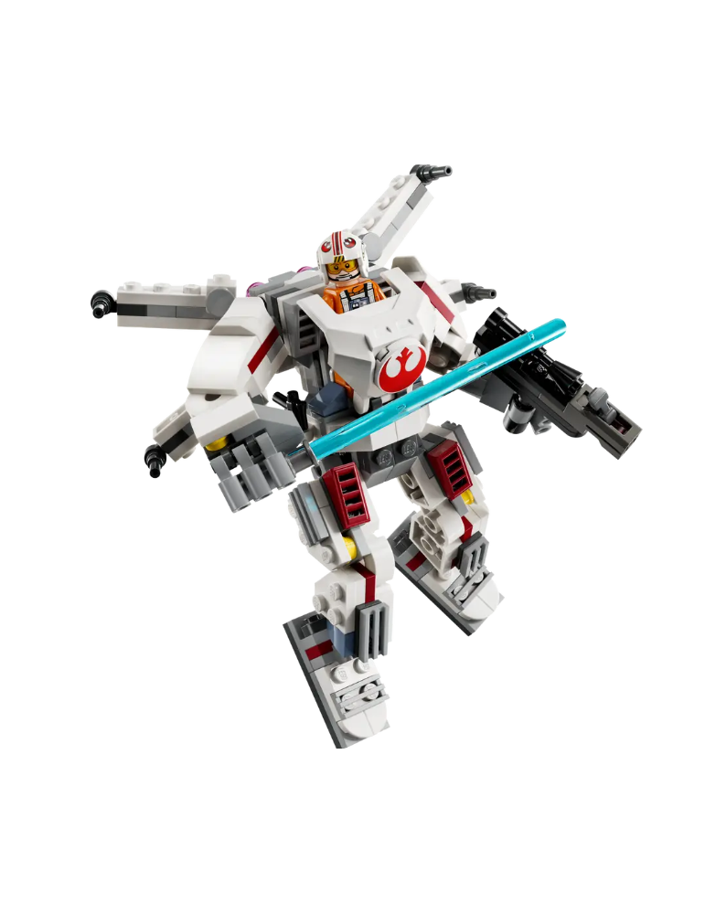 Mech X-wing LEGO® costruibile: il mech è dotato di mani, braccia, gambe e piedi snodabili, cabina per minifigure apribile e jetpack X-wing regolabile, oltre a una grande spada laser e un blaster spara-bottoncini