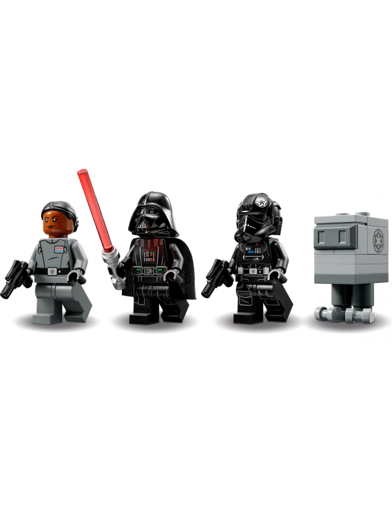 3 minifigure LEGO® Star Wars™ con armi, più un Droide Gonk Droid: Darth Vader con una spada laser, il Vice Ammiraglio Sloane e un pilota del TIE Bomber, ciascuno dotato di pistola blaster, oltre al personaggio del Droide Gonk