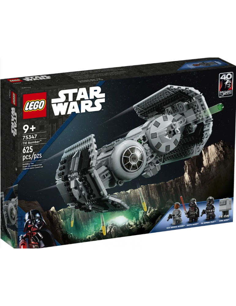 I fan di Star Wars: L’Impero colpisce ancora possono ricreare le missioni imperiali per difendere l’Alleanza Ribelle con questo starfighter giocattolo TIE Bomber LEGO® in mattoncini. Il caccia stellare è caratterizzato da un abitacolo apribile per minifigure, una funzione lancia-bombe e 2 shooter. Una magnifica idea regalo per i fan di Star Wars™ dai 9 anni in su, questo playset giocattolo costruibile, ricco di azione, include anche le minifigure LEGO di Darth Vader, del Vice Ammiragli Sloane e del pilota del TIE Bomber, dotati di armi, più il personaggio LEGO del Droide Gonk e un carrello per trasportare le bombe nel TIE Bomber.
