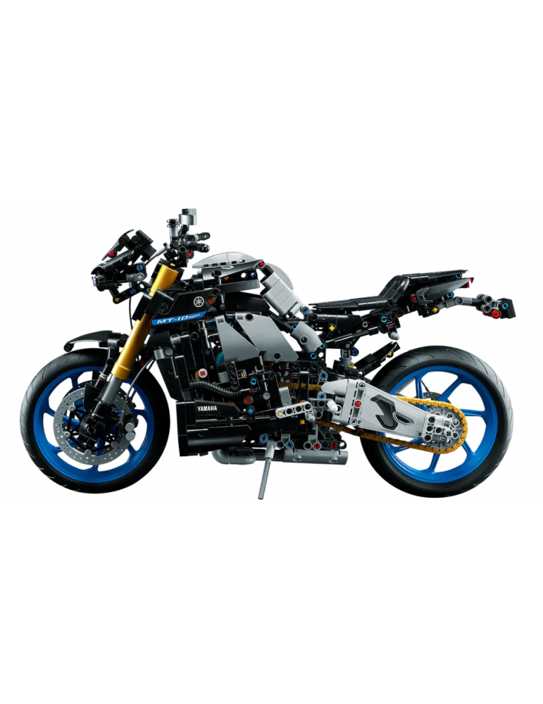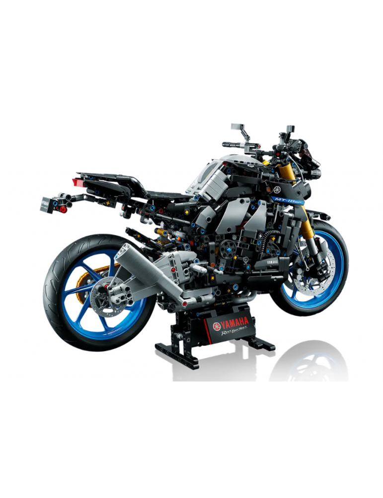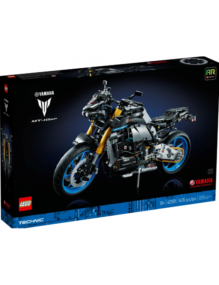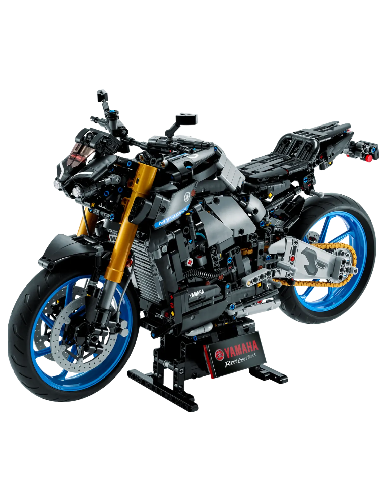 Finalmente un progetto che entusiasmerà gli appassionati di motociclette adulti! Questo modello della Yamaha MT-10 SP LEGO® Technic rende omaggio alla motocicletta Yamaha più potente nella categoria “hyper naked”. Lo stile spoglio mette in risalto il potente motore a 4 cilindri. Esplora l’app LEGO AR per vedere il modello prendere vita.