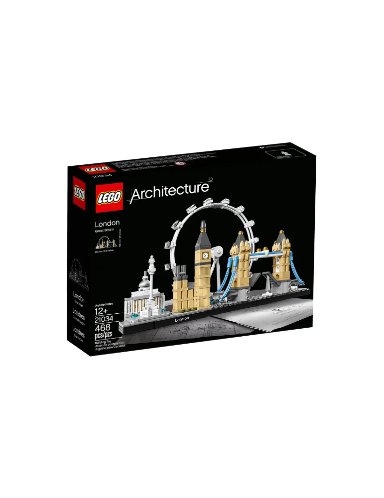 La collezione LEGO Architecture Skyline contiene modelli perfetti per l’esposizione, in casa e in ufficio, ed è stata sviluppata per tutti gli appassionati dei viaggi, dell'architettura, della storia e del design. Ogni set è in scala per offrire una rappresentazione accurata delle dimensioni comparative di ogni edificio, con colori realistici. Questo set contiene la National Gallery, la Colonna di Nelson, il London Eye, il Big Ben (Elizabeth Tower) e il Tower Bridge, più la targhetta decorativa “Londra.