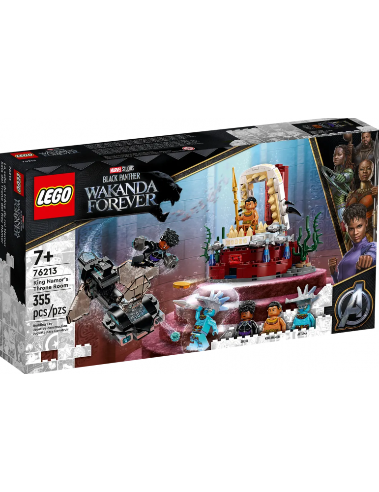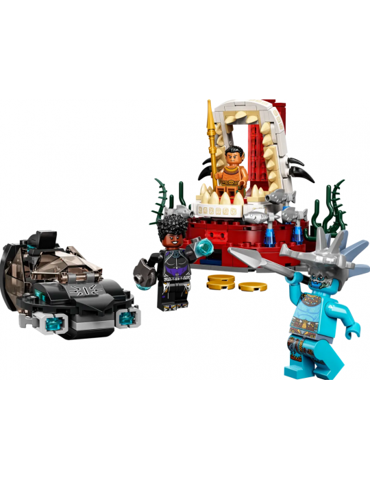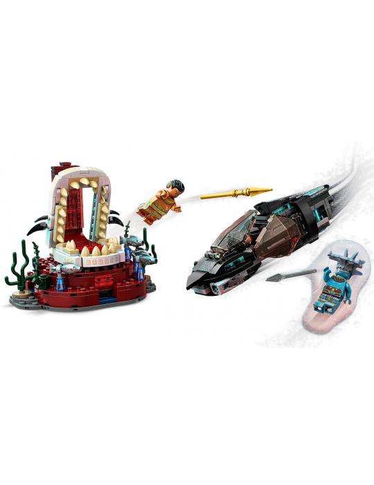 Personaggi Marvel: include le minifigure di Shuri, Attuma e Re Namor, il sottomarino costruibile e la sala del trono con alghe e pesci
