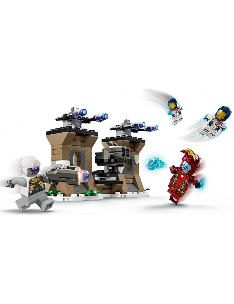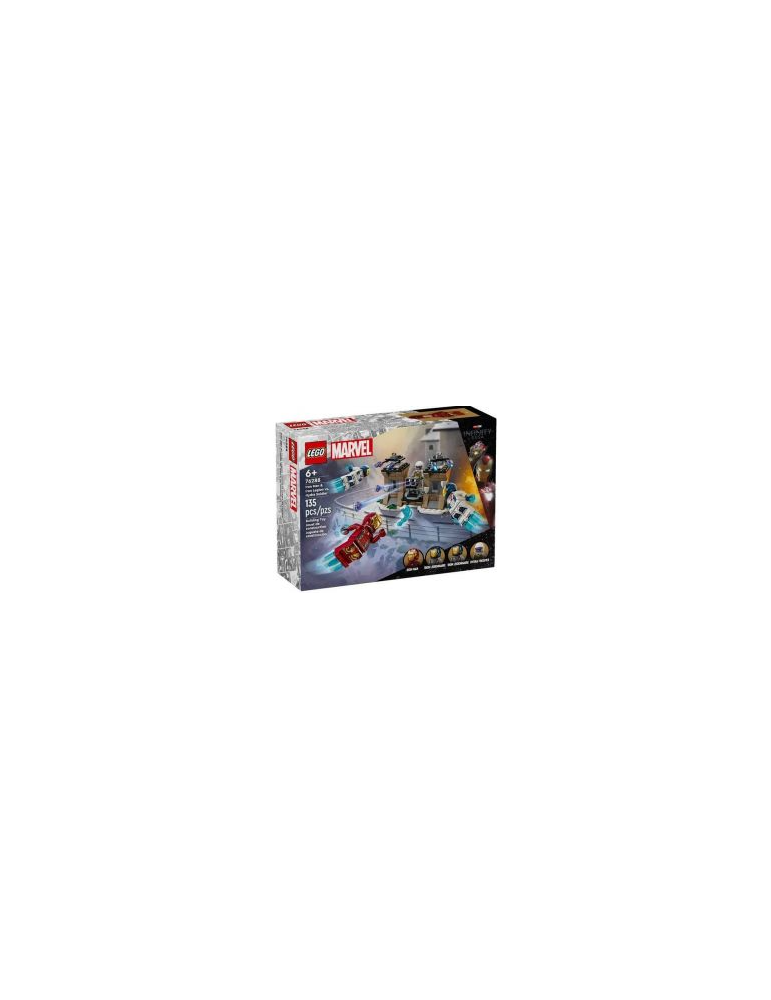 Il set include 4 minifigure:Iron Man, 2 Legionari di ferro e un Soldato dell’Hydra. Il giocattolo Iron Man costruibile è dotato di visiera apribile e contiene un potente blaster. Il Soldato dell’Hydra è dotato di uno shooter. Sono inclusi mattoncini blu trasparenti per dare l’impressione che le minifigure stiano volando. La base dell’Hydra costruibile è dotata di 2 shooter fissati su un pavimento rotante, dove i bambini possono posizionare il Soldato dell’Hydra per prendere di mira i supereroi in arrivo.