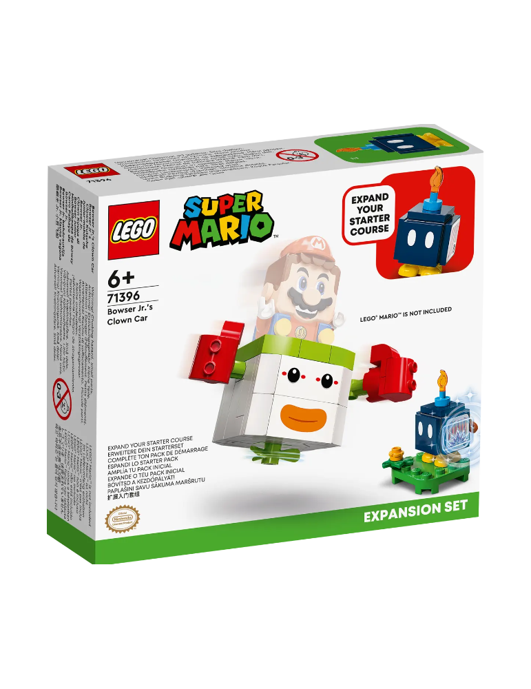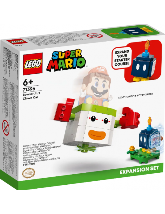 Clown Koopa di Bowser Junior - Pack di Espansione (71396) permette ai bambini dai 6 anni in su di vivere tutta l’azione di LEGO® Super Mario™. Il set include una versione in mattoncini dell’auto di Clown Junior e il personaggio LEGO di un Bob-omba per aggiungere divertimento ai loro Starter Pack. Posiziona LEGO® Mario™ e/o LEGO® Luigi™ (personaggi non inclusi) sull’auto di Clown Junior e vola per raccogliere più monete digitali possibile (nota: per il gioco interattivo è necessario lo Starter Pack 71387 o 71360).