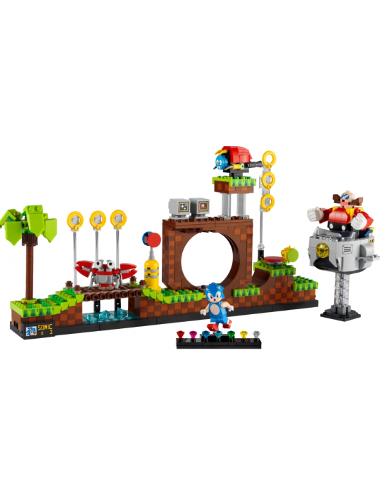 Disponi il livello a modo tuo e portalo in vita con una minifigure di Sonic the Hedgehog e i personaggi di Dr. Eggman, Moto Bug e Crabmeat. Sono incluse istruzioni di montaggio dettagliate e, proprio come nel videogioco, si raccolgono gli Smeraldi del Caos mentre si avanza di livello. Un espositore per i 7 Smeraldi e la minifigure di Sonic completa un colorato pezzo da esposizione. È un fantastico regalo commemorativo per tutti gli appassionati di Sonic.