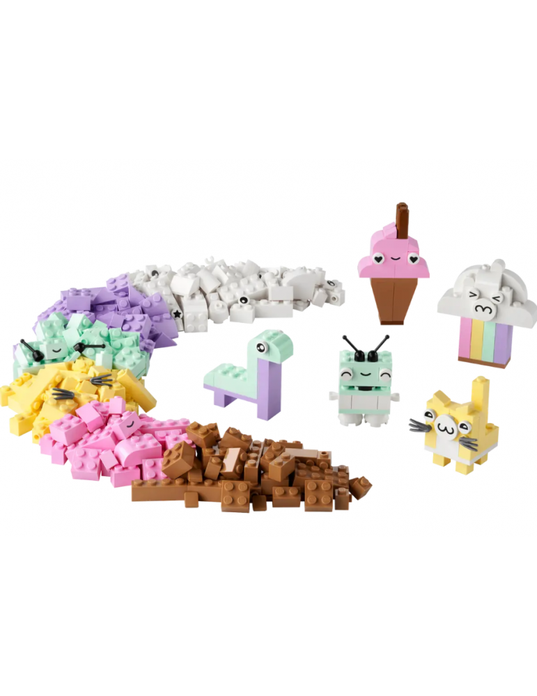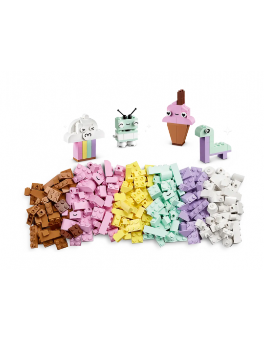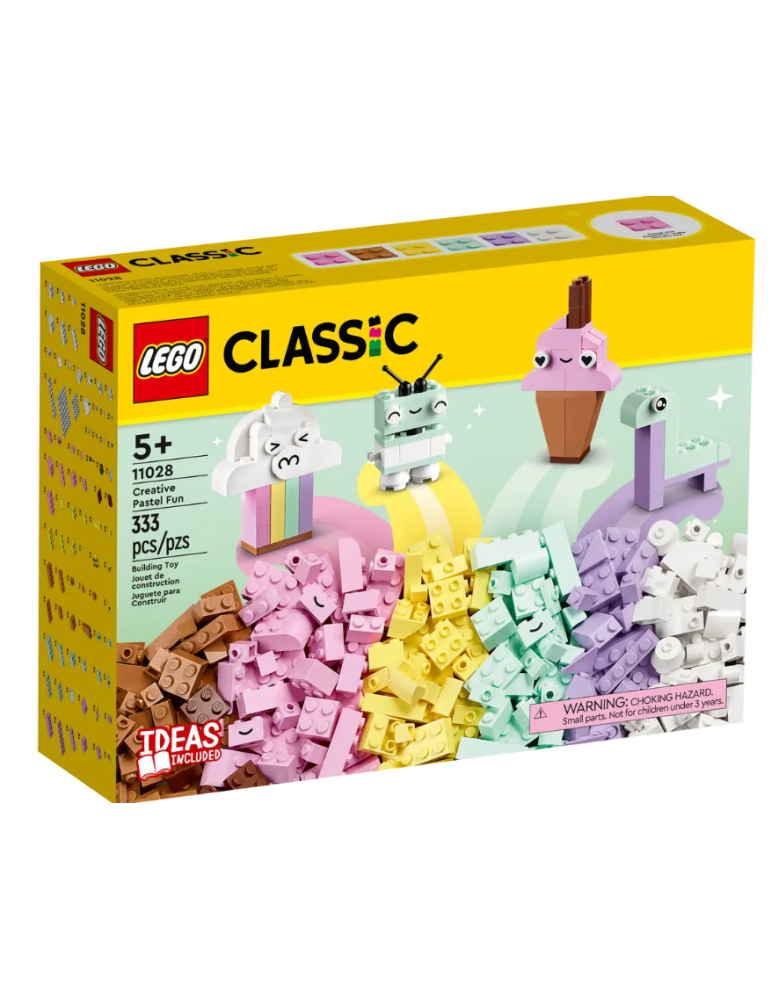 Ispira i costruttori in erba dai 5 anni in su con il set Divertimento creativo - Pastelli LEGO® Classic (11028). Con modelli veloci da costruire e un infinito divertimento con la costruzione libera, questo attraente mix di mattoncini asseconda la passione per l’arte e il design dei bambini. Gioco creativo con i colori pastello Questo versatile kit da costruzione contiene 333 mattoncini di varie dimensioni e dai vivaci colori pastello. 18 mattoncini sono dotati di occhi espressivi che i bambini possono usare per dare vita alle loro creazioni. Sono incluse le istruzioni stampate per la realizzazione di 5 divertenti modelli - una nuvola, un gelato, un dinosauro un gatto e un robot. Mentre la loro sicurezza di sé aumenta, i bambini possono esplorare un divertimento senza fine con la costruzione libera. Una versione digitale delle istruzioni per la costruzione del set è disponibile anche nell’app LEGO Builder. Perfetti per tutta la famiglia I giocattoli LEGO Classic per bambini dai5 anni in su forniscono ispirazione e tante nuove idee, offrendo agli adulti un'opportunità da non perdere per divertirsi con le costruzioni e accompagnare i figli nelle diverse tappe evolutive.
