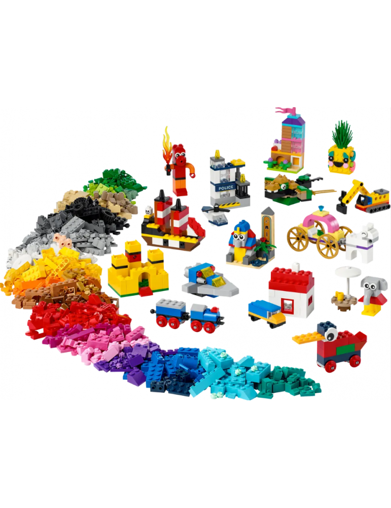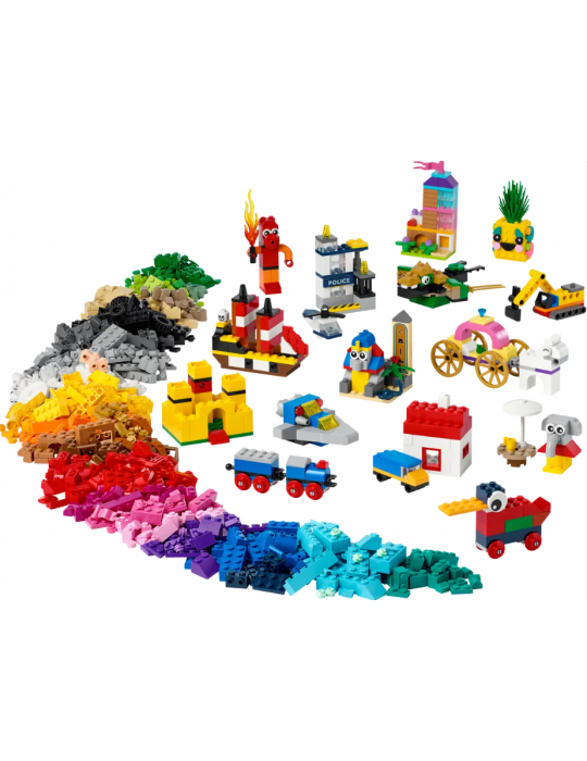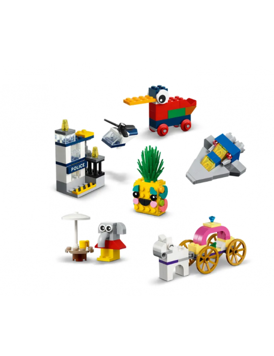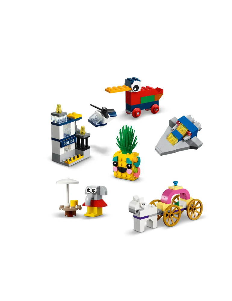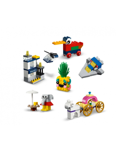 Cosa c’è nella scatola? Tutto il necessario per costruire 15 mini costruzioni di giocattoli LEGO® tradizionali, dalla nave pirata all’elefante o al castello giallo, oltre a tanti mattoncini LEGO extra per la costruzione libera
