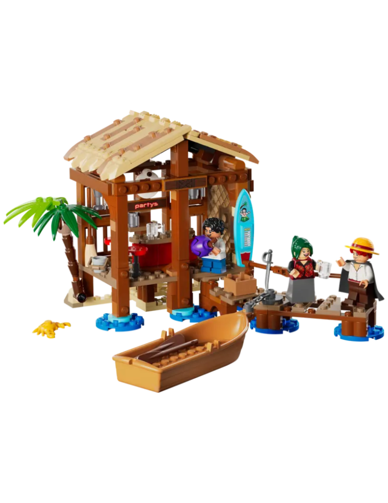 I bambini possono rimuovere il tetto del negozio sulla spiaggia per accedere al suo interno ricco di divertimento. I bambini troveranno gli accessori per gestire il negozio e intrattenere i clienti. C’è un poster “Ricercato” da attaccare alla parete e spazio per altri poster “Ricercato” disponibili in altri modelli LEGO® ONE PIECE (disponibili separatamente). All’esterno, c’è una barca pirata giocattolo attraccata al molo con una catena. Il set include le minifigure di Luffy, Shanks e Makino, 3 personaggi memorabili della serie Netflix. Per tanto divertimento digitale in più, i costruttori possono ingrandire, ruotare i modelli in 3D e seguire i loro progressi utilizzando l’intuitiva app LEGO Builder.