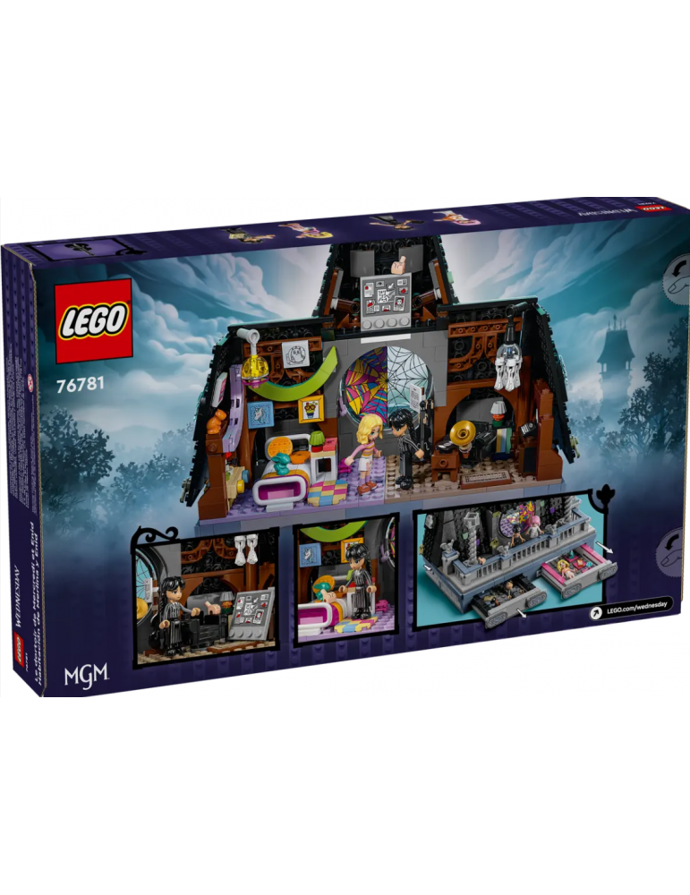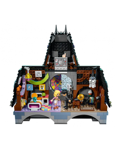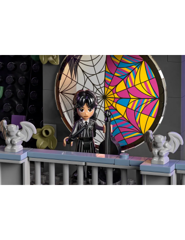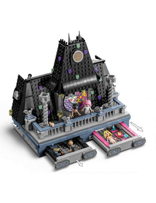 Bentornati alla Nevermore Academy con questo set d’avventura e misteri Il dormitorio di Mercoledì ed Enid per bambini e fan dai 10 anni in su. Questo dettagliato set regalo Mercoledì Addams LEGO® contiene 4 mini-doll collezionabili di Mercoledì ed Enid, il personaggio della Mano e un modello di dormitorio. La stanza include un violoncello, una macchina da scrivere, una lavagna misteriosa, un balcone con doccioni, una finestra apribile, una base con pulsanti per aprire cassetti nascosti e altro ancora. All’interno dei cassetti puoi riporre 2 mini-doll, insieme agli accessori che includono un copricapo con orecchie di gatto e il telefono di Enid.