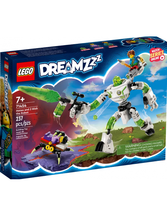 Lascia che i bambini dai 7 anni in su si perdano nel mondo dei sogni con il set giocattolo costruibile Mateo e il robot Z-Blob LEGO® DREAMZzz™. Basato sull’azione dello show televisivo DREAMZzz, questo set consente ai bambini di trasformare Z-Blob in un robot per aiutare Mateo a salvare Jayden, che è stato rapito da un mostro-incubo.