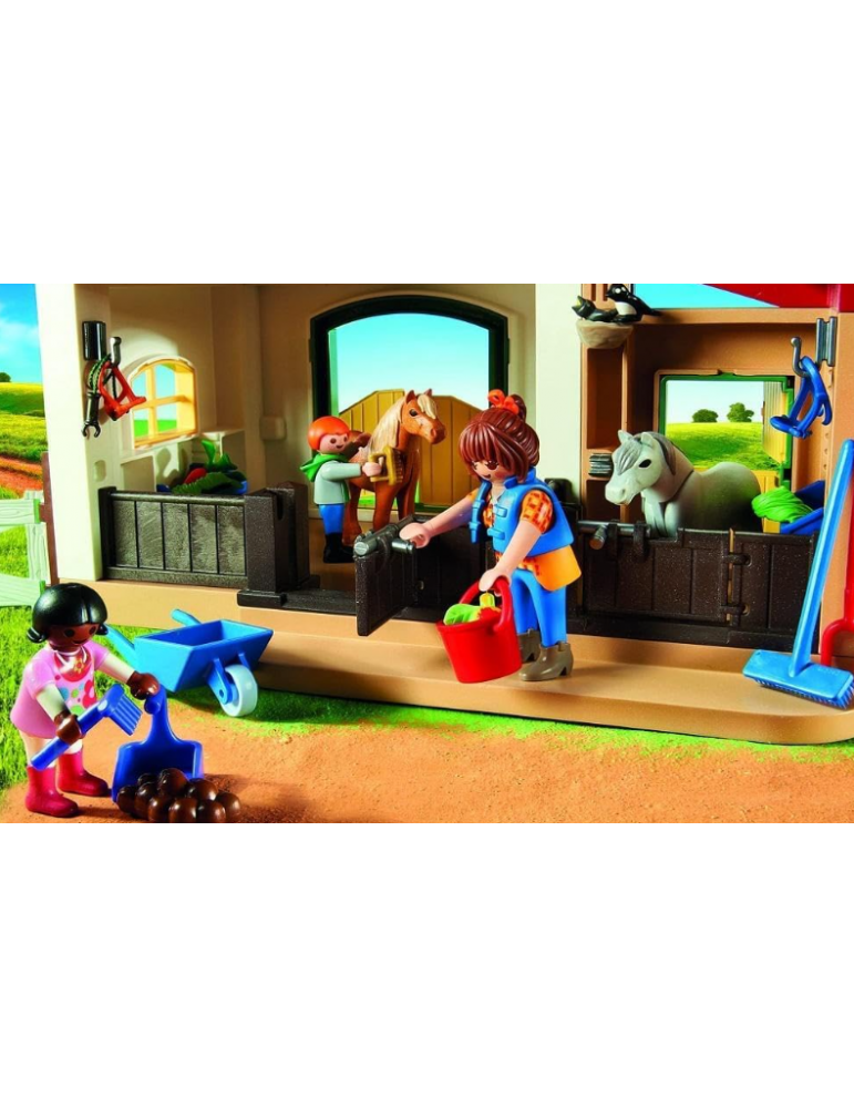 Nel maneggio con i loro animali preferiti, i piccoli amanti dei cavalli dimenticano completamente il mondo che li circonda: mettere le redini e la sella, montare a cavallo e via al galoppo verso il sole con il proprio migliore amico. Il maneggio dei pony PLAYMOBIL permette di vivere momenti meravigliosi ed emozionanti avventure nella comodità di casa. Giocando con stalle, recinti, cavalieri, cavalli e numerosi accessori realistici, ragazze e ragazzi possono far volare la loro immaginazione.
