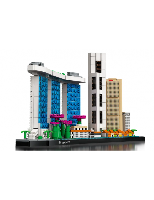 Lasciati trasportare in una delle città più entusiasmanti al mondo mentre costruisci questo modello LEGO® Architecture Skyline Collection, non è necessario alcun passaporto! Trascorri del tempo di qualità ricreando il Marina Bay Sands, l'OCBC Centre, One Raffles Place, il mercato di Lau Pa Sat, il Fullerton Hotel Singapore e Supertree Grove nei Gardens by the Bay. Aggiungi gli elementi LEGO che rappresentano il fiume Singapore e gli alberi per completare il più grande e complesso modello di skyline LEGO ideato finora.