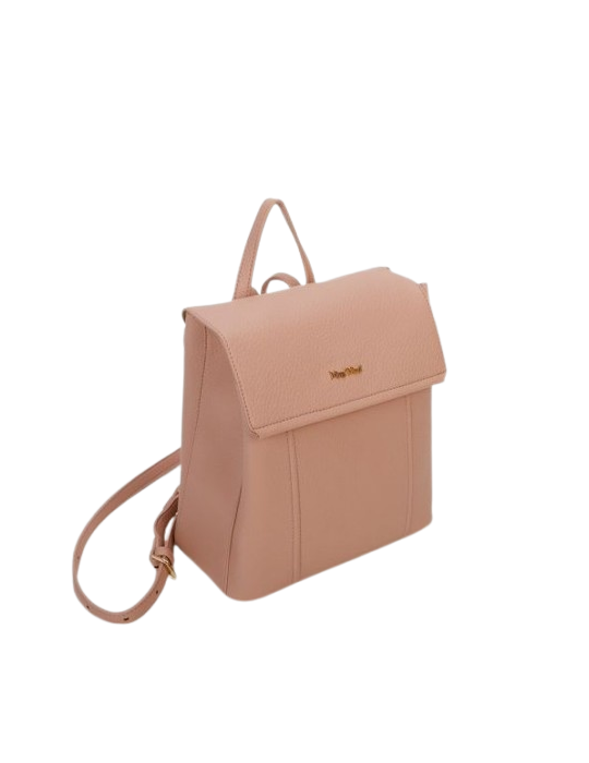 Zaino donna Mimì-Muà. Zaino realizzato in robusto materiale sintetico. Smpia tasca principale chiusa da zip e patta, tasca interna chiusa da zip e tasche per piccoli oggetti. Spallacci regolabili in lunghezza.