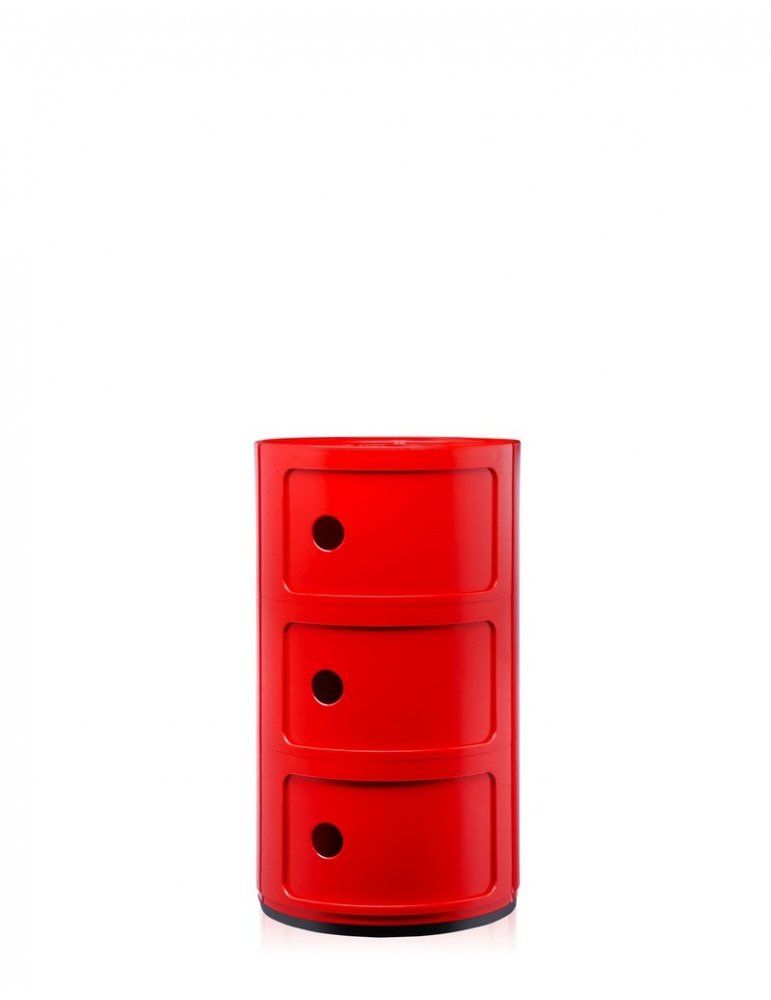 Il più famoso mobile contenitore della Kartell, il Componibile con tre ante in ABS rosso