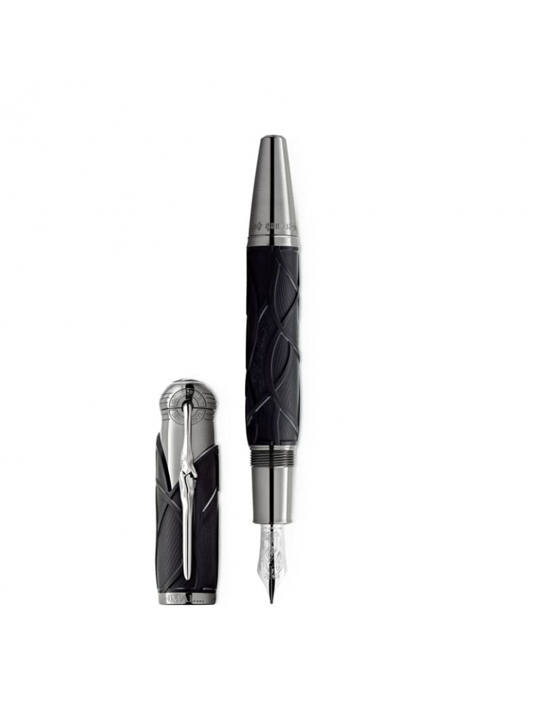 “C’era una volta...” La Montblanc Writers Edition Homage to Brothers Grimm è dedicata a Jacob e Wilhelm Grimm e celebra il loro lavoro di raccolta e rielaborazione delle fiabe popolari tedesche ed europee, fra le quali ricordiamo alcune delle più celebri come “Biancaneve”, “Cenerentola” e “La bella addormentata”. La silhouette complessiva dello strumento da scrittura riprende la forma di un antico bastone da montagna e il colore nero evoca l’oscurità delle foreste, scenario abituale delle fiabe popolari dei fratelli Grimm. Inoltre, il motivo a onde sul corpo e sul cappuccio è ispirato ai capelli di Raperonzolo ed evoca anche la forma delle radici, riferimento al fatto che i fratelli Grimm vedevano il loro lavoro linguistico come una “ricerca legata alle radici”. Il cappuccio è coronato dall’emblema Montblanc in pregiata resina. Quando viene ruotata, la clip finitura platino, ispirata a un pezzo di legno nodoso, rivela a sorpresa la silhouette del profilo dei fratelli Grimm.