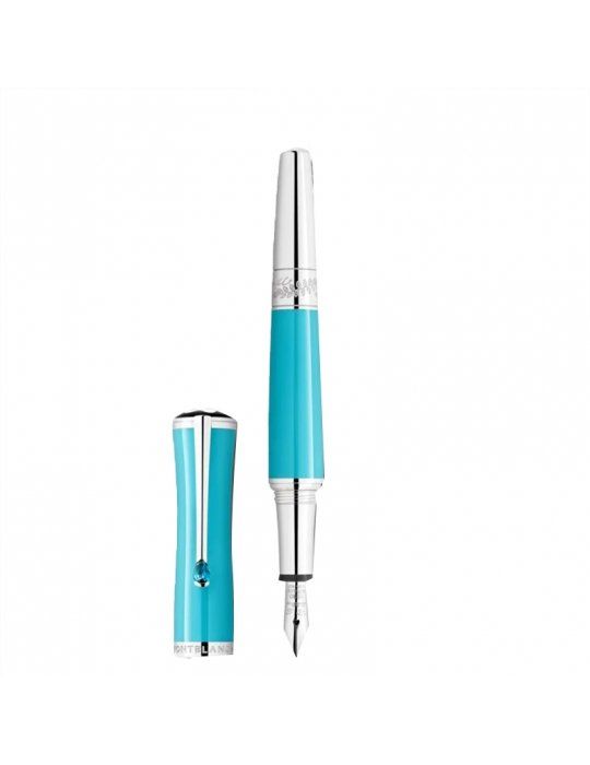L’Edizione Speciale Montblanc Muses Maria Callas è dedicata a uno dei soprani più carismatici del XX secolo, nonché icona di stile particolarmente apprezzata. Con il suo talento, la sua passione e la sua personalità, ha incarnato un preciso ideale di diva dell’opera. In alcuni dei più grandi teatri dell’opera, dalla Scala di Milano all’Opéra di Parigi, fino al Metropolitan Opera House di New York, era conosciuta come “La Divina”. L’edizione enfatizza uno dei suoi colori preferiti, il turchese, nella pregiata resina del corpo e del cappuccio, mentre la silhouette sottile ed elegante riflette la bellezza aggraziata di Maria Callas. Per evocare la sua patria circondata dal mare, la Grecia, la clip finitura platino è impreziosita da una pietra il cui colore ricorda il luminoso blu turchese del Mar Egeo. Il dettaglio di un costume tratto dalla “Norma” di Bellini, uno dei suoi ruoli più iconici per quanto riguarda il “bel canto”, si riflette nel motivo a foglie di alloro che avvolge il cono finitura platino dell’edizione, assieme alla goffratura della firma del rinomato soprano. Il pennino realizzato a mano in oro massiccio Au 585 finitura rodio reca la goffratura dell’iconico sguardo felino evidenziato dalla matita nera, così tipico della sua immagine, nonché del nome inseparabile da Maria Callas: “La Divina”.