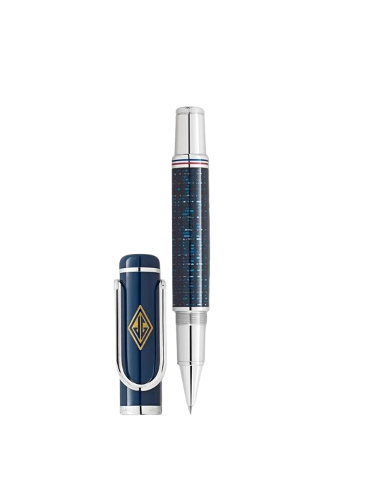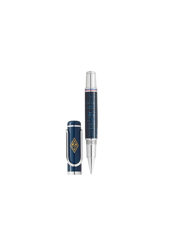 Alcuni romanzi fanno la storia della letteratura e, allo stesso tempo, diventano il simbolo di un’intera epoca. Il grande Gatsby di Scott Fitzgerald è un gioiello della letteratura moderna americana. Pubblicato nel 1925, il romanzo immortala un’affascinante fotografia dell’epoca del jazz e dei ruggenti anni ‘20, periodo di opulenza e autoindulgenza senza precedenti. La vivace New York, le sfarzose dimore di Long Island e gli sfavillanti party dell’alta società fanno da sfondo alla storia di Jay Gatsby, un misterioso milionario, che non si fermerà davanti a nulla per riconquistare l’amore perduto della sua giovinezza, Daisy Buchanan. L’abbagliante New York dell’epoca di Gatsby, i cui grattacieli scintillanti dell’Art Déco si stagliano nel cielo blu della sera hanno ispirato il design dell’Edizione Speciale Great Characters Homage to The Great Gatsby. Creata in omaggio a uno dei primi strumenti da scrittura dell’epoca Art Déco, la superficie del corpo, realizzata mediante una tecnica speciale, sembra riflettere le alte facciate dei grattacieli della città in piena espansione, illuminate di notte. Senza fronzoli, ma con una luce verde che brilla come quella del molo della casa di Daisy ne Il grande Gatsby, l’emblema fluorescente Montblanc nella parte superiore del cappuccio cattura e immagazzina la luce durante il giorno, per poi brillare al buio. L’apparente potere del denaro è rappresentato in questa edizione da una clip finitura platino a forma di fermasoldi. L’apertura arrotondata è decorata con le iniziali di Jay Gatsby in versione monogramma romboidale finitura oro in stile Art Déco. Il mito del sogno americano e l’elegante design delle fiaschette del periodo Art Déco sono richiamati dal cono che imita il tappo inciso di una fiaschetta e dai raffinati anelli che lo circondano, nei colori della bandiera americana.