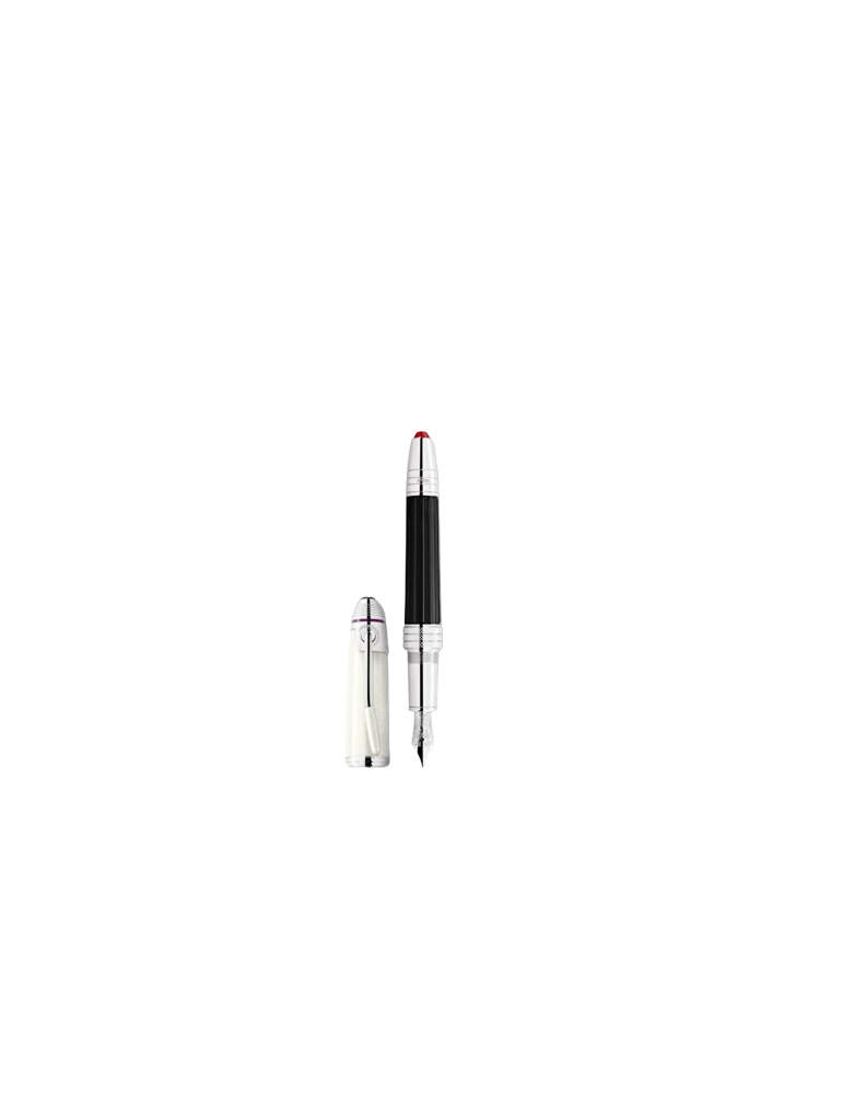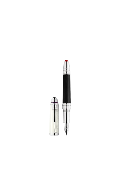 Nel 2022, Montblanc rende omaggio a uno dei musicisti più celebri del XX secolo, universalmente considerato uno dei chitarristi elettrici più importanti nella storia della musica popolare: Jimi Hendrix. In pregiata resina, il colore bianco sporco del cappuccio e il suo motivo inciso si ispirano a una delle tracolle delle chitarre indossate da Hendrix, mentre il corpo nero è impreziosito da un elegante motivo che ricorda un pedale WAH. La forma della clip finitura platino ricorda la leva del vibrato di una chitarra elettrica. L’emblema Montblanc sulla parte superiore del cappuccio è in pregiata resina. Un altro dettaglio sorprendente è l’anello del corpo finitura platino che trae ispirazione dal cavo di una chitarra degli anni ‘60, con incisa la data di un celebre concerto di Jimi Hendrix. Il pennino in oro massiccio Au 585 lavorato a mano finitura rodio sfoggia un ritratto di Jimi Hendrix.