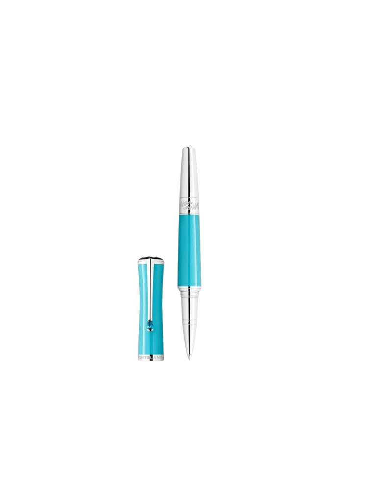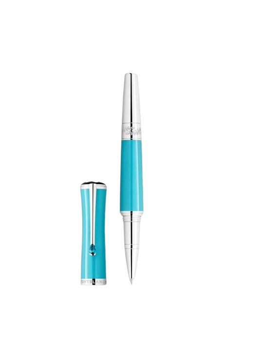 L’Edizione Speciale Montblanc Muses Maria Callas è dedicata a uno dei soprani più carismatici del XX secolo, nonché icona di stile particolarmente apprezzata. Con il suo talento, la sua passione e la sua personalità, ha incarnato un preciso ideale di diva dell’opera. In alcuni dei più grandi teatri dell’opera, dalla Scala di Milano all’Opéra di Parigi, fino al Metropolitan Opera House di New York, era conosciuta come “La Divina”. L’edizione enfatizza uno dei suoi colori preferiti, il turchese, nella pregiata resina del corpo e del cappuccio, mentre la silhouette sottile ed elegante riflette la bellezza aggraziata di Maria Callas. Per evocare la sua patria circondata dal mare, la Grecia, la clip finitura platino è impreziosita da una pietra sintetica il cui colore ricorda il luminoso blu turchese del Mar Egeo. Il dettaglio di un costume tratto dalla “Norma” di Bellini, uno dei suoi ruoli più iconici per quanto riguarda il “bel canto”, si riflette nel motivo a foglie di alloro che avvolge il cono finitura platino dell’edizione, assieme alla goffratura della firma del rinomato soprano.