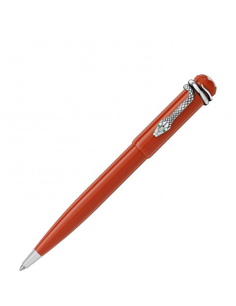 Quando fu creata, nel 1906, la stilografica "Rouge et Noir" era considerata una straordinaria prodezza tecnica, che garantiva un utilizzo semplice, senza dover continuamente intingere il pennino nel calamaio. La Heritage Collection Rouge et Noir celebra il 110° anniversario dello spirito pionieristico di Montblanc. Rielaborazione del leggendario strumento da scrittura, è caratterizzata da una silhouette più lunga e sottile e una maestria artigiana affinata di generazione in generazione, con corpo e cappuccio in pregiata resina color corallo. Clip a serpente in stile vintage con dettagli coordinati. La clip è realizzata con un procedimento di stampaggio e avvolgimento in una speciale lega metallica e viene anticata attraverso un’esclusiva tecnica di galvanizzazione e decapaggio.