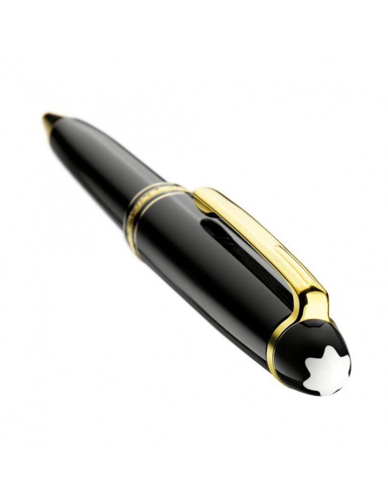 La Meisterstück Classique in pregiata resina nera con dettagli finitura oro, sormontata dall'emblema a forma di stella bianca, rappresenta un'esclusiva icona di design.