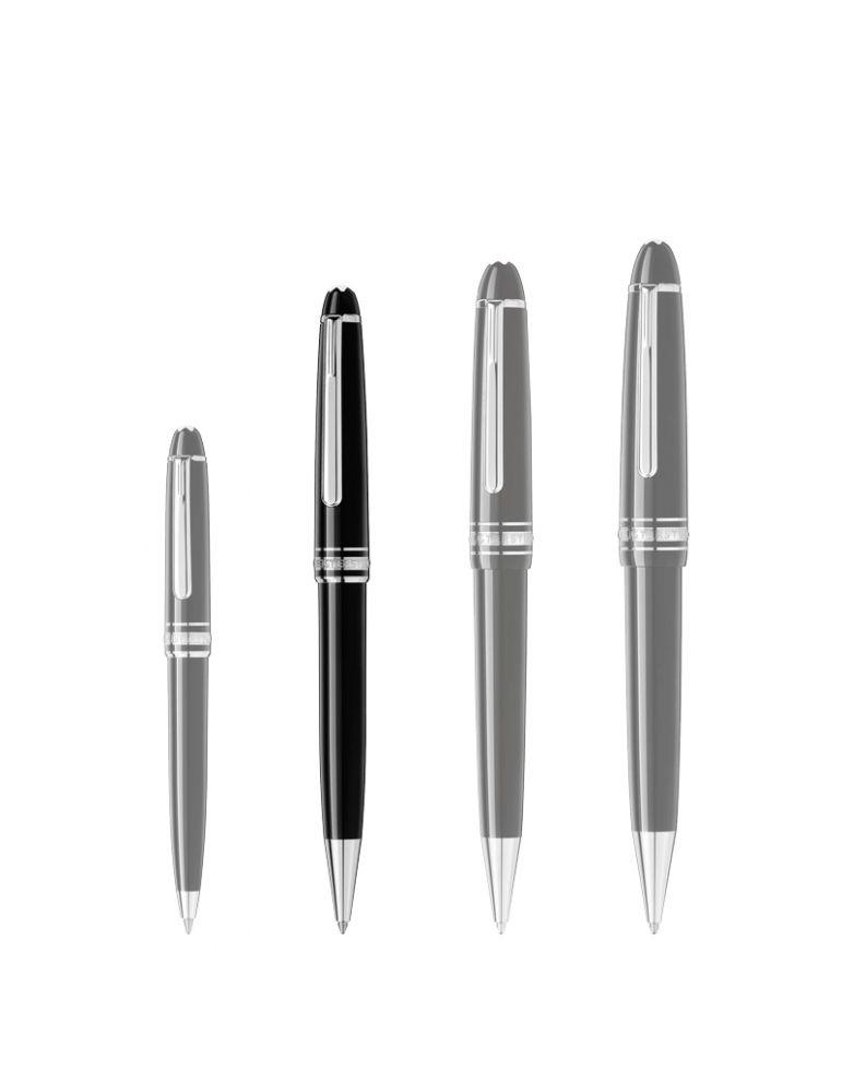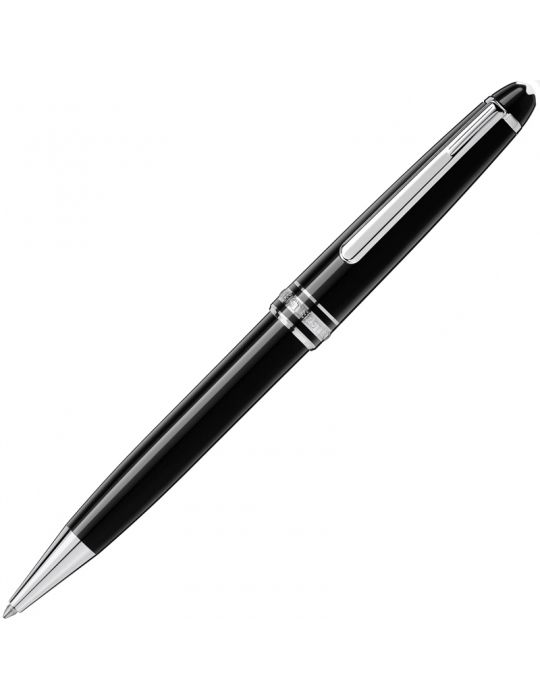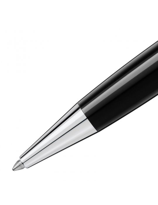 La lussuosa penna a sfera Meisterstück Classique diventa un’icona esclusiva del design Montblanc. Il corpo e il cappuccio sono in pregiata resina nera con emblema Montblanc bianco intarsiato. I tre anelli finitura platino con goffratura del marchio Montblanc e la clip finitura platino con numero di serie individuale mettono ulteriormente in risalto il design intramontabile di questa lussuosa penna a sfera.