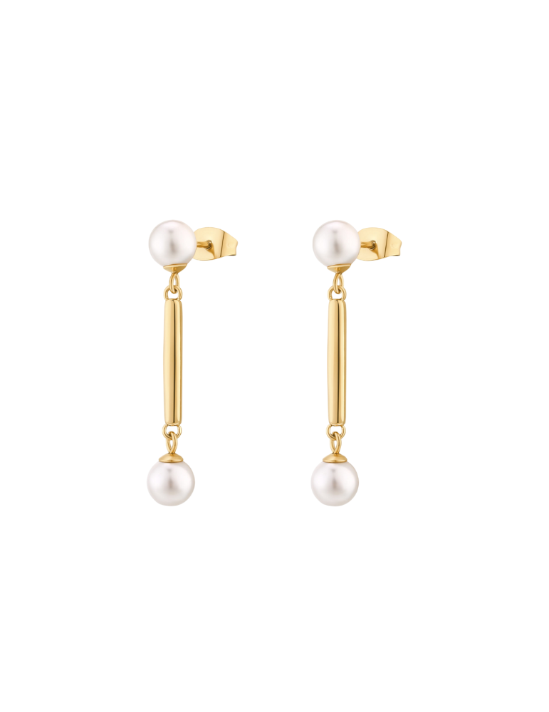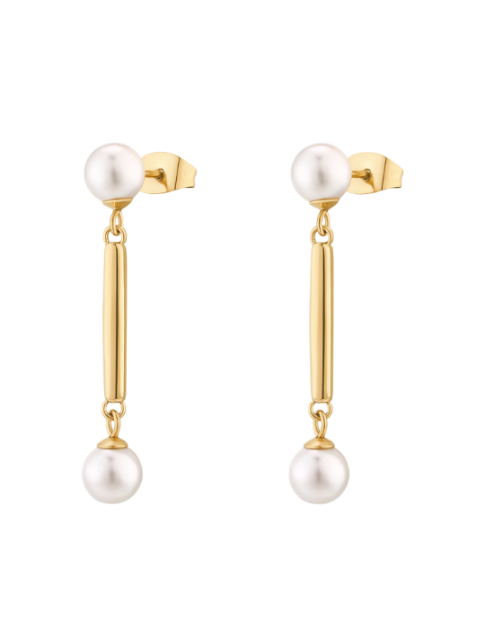 Orecchini pendenti in acciaio 316L e finitura pvd oro 14K con perle.