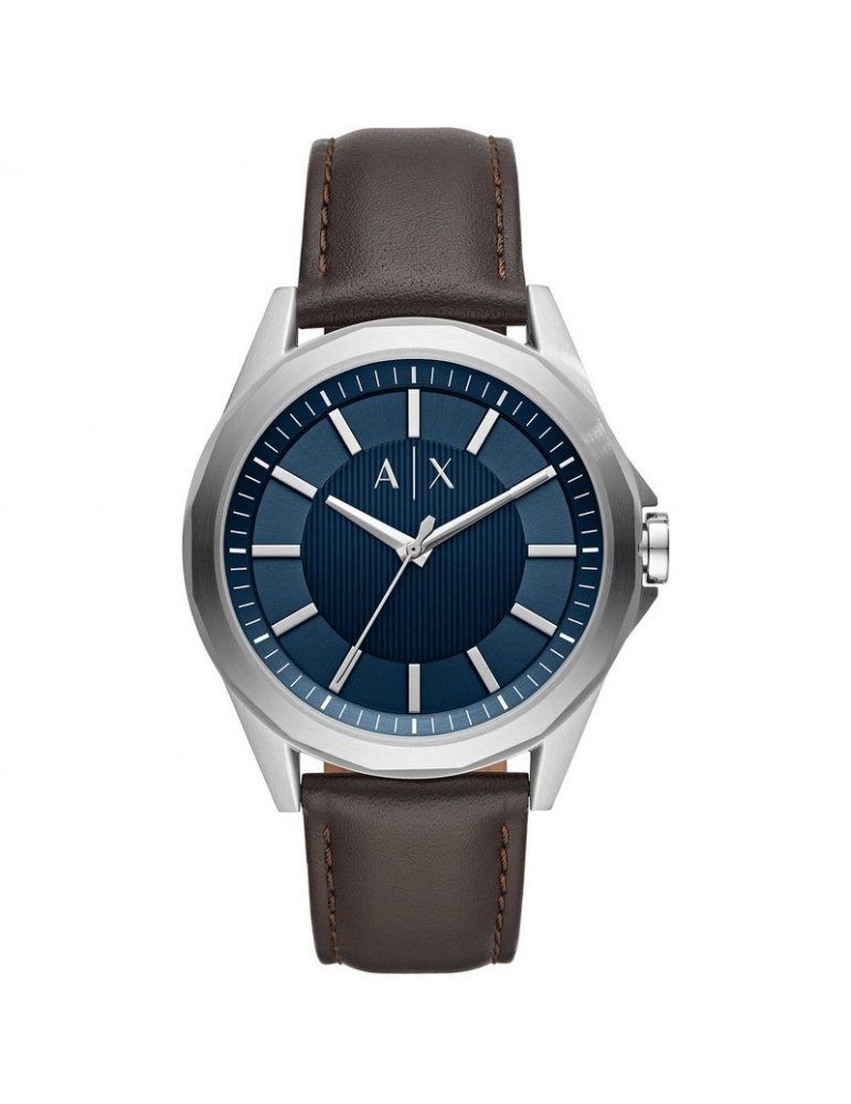 della linea Armani Exchange, con cassa in acciaio, quadrante blu e cinturino in pelle marrone