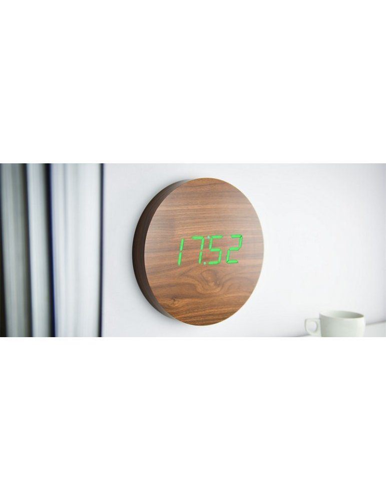modello Click Clock Wall Walnut, digitale, in legno di noce, con funzione aggiuntiva datario e termometro